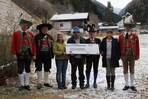 Dieser Betrag war vom Hilfsfonds des Südtiroler Schützenbundes als Soforthilfe bereitgestellt worden, nachdem der Goarerhof in Ober-Petschied, Hinterlüsen in der Nacht vom 24. auf den 25. März 2014 bis auf die Grundmauern niedergebrannt war.